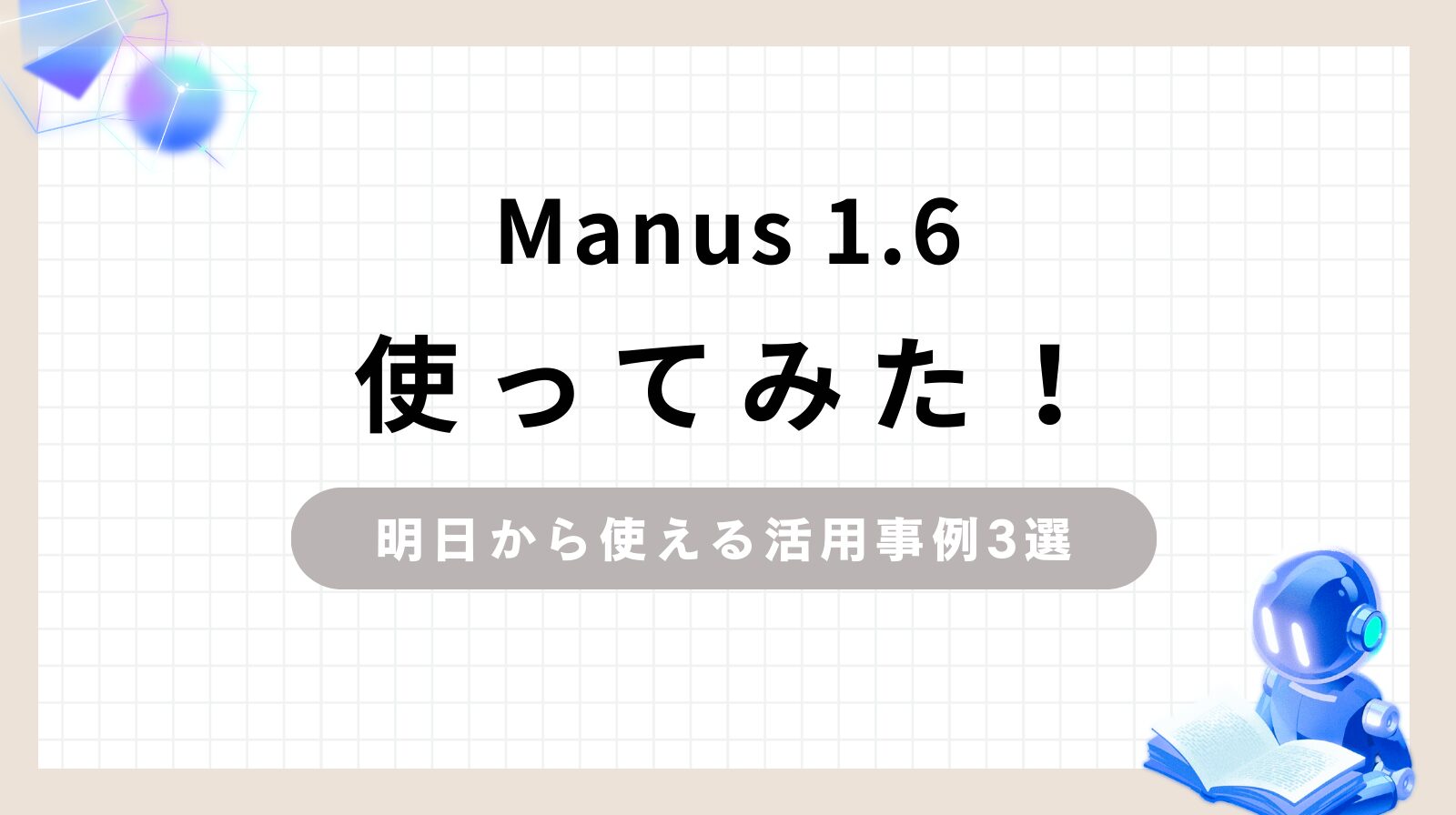 「Manus 1.6使ってみた!明日から使える活用事例3選」のアイキャッチ画像